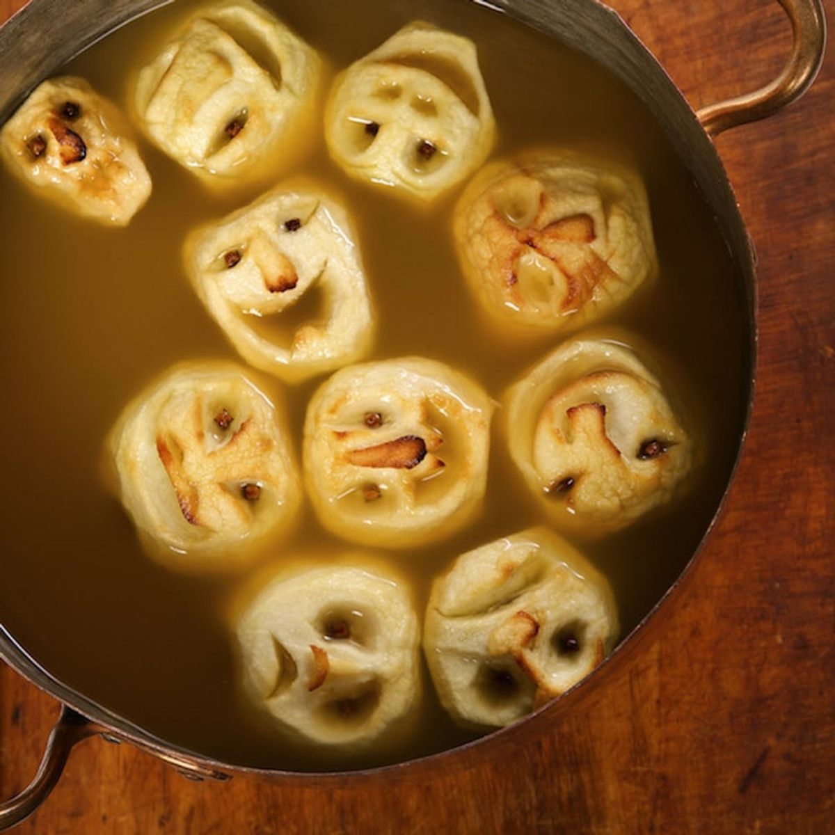 5. Shrunken Head Cider: Make a girls’ night out of it and have everyone carve their own apple to add to the bowl. Once carved, bake for 90 minutes and press a clove into each eye socket. (via Martha Stewart)