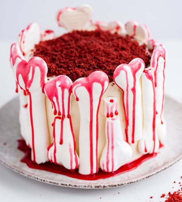 If you're planning an epic Halloween bash this year, you'll want a gloriously ghoulish red velvet cake recipe to serve. It'll make a spook-tacular centerpiece and satisfy the sweet teeth of your guests. And it's stress-free — you can bake the meringue bones and cake layers in advance and assemble the cake just before you're ready to serve. Make sure to have some Halloween-themed drinks to serve alongside the cake!