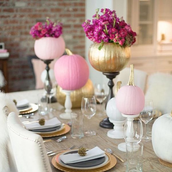 2. Pops of Pink: Who says your color scheme is restricted to black and orange? Grab some paint and get crafty for a cute and colorful tablescape that will last you well past Halloween. (via Alicia Fashionista)