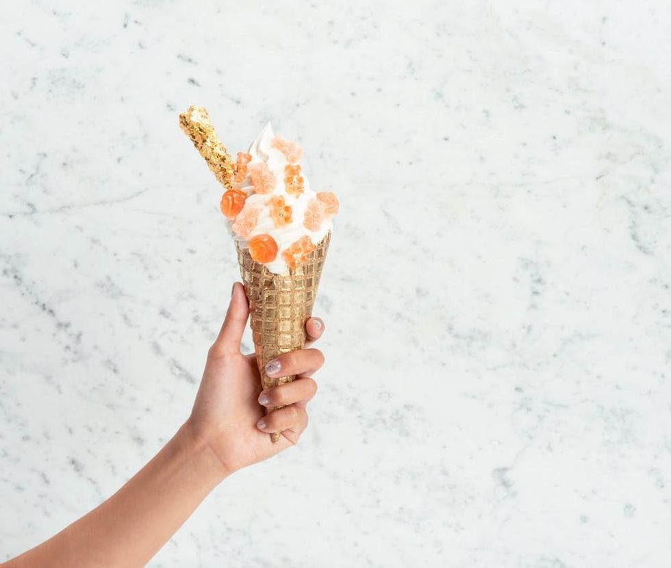 The actual treat features Halo Top vanilla bean soft serve swirled into a freshly made golden waffle cone and topped with 24K Gold Rosé All Day Bears, Sparkling Rosé Bears, and But First, Rosé Roses (all from Sugarfina’s Rosé All Day collection), and a 24K Gold Rosé Rock Candy Swizzle Stick. Wowzers.