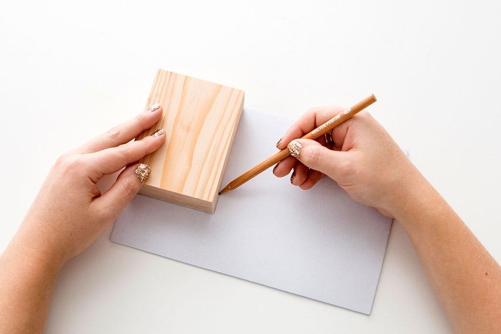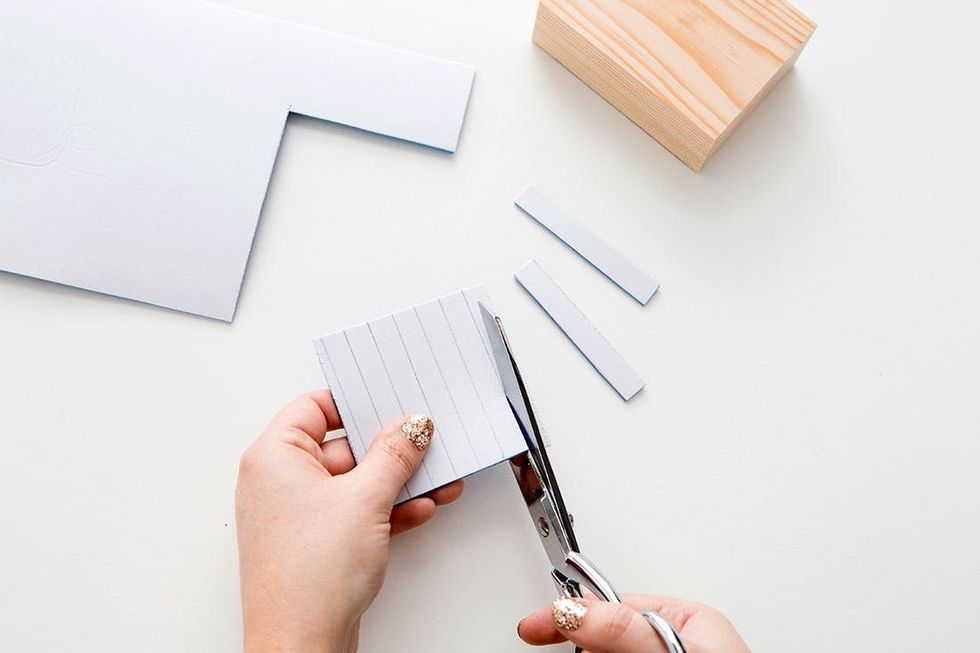 Cut out strips, triangles or any other custom shapes with a pair of scissors while staying within the size limits of the wood block.