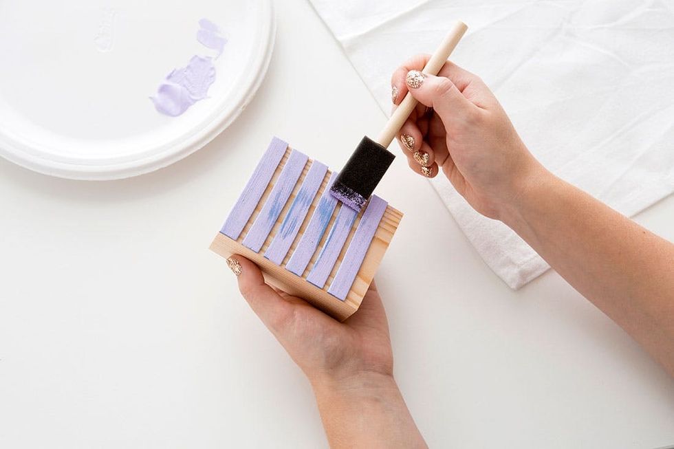 Peel off the paper backing and stick your foam shapes onto one side of the wood block.
