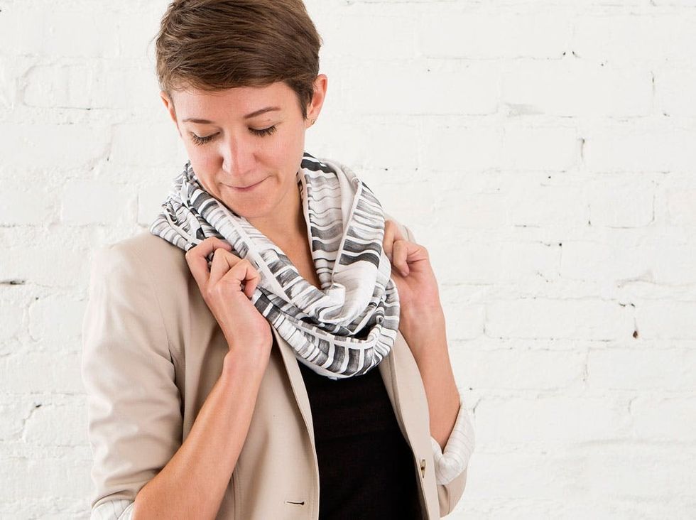 Sew, safety pin, or tie the ends together to turn it into an infinity scarf, or simply tuck the ends in to give the same effect.