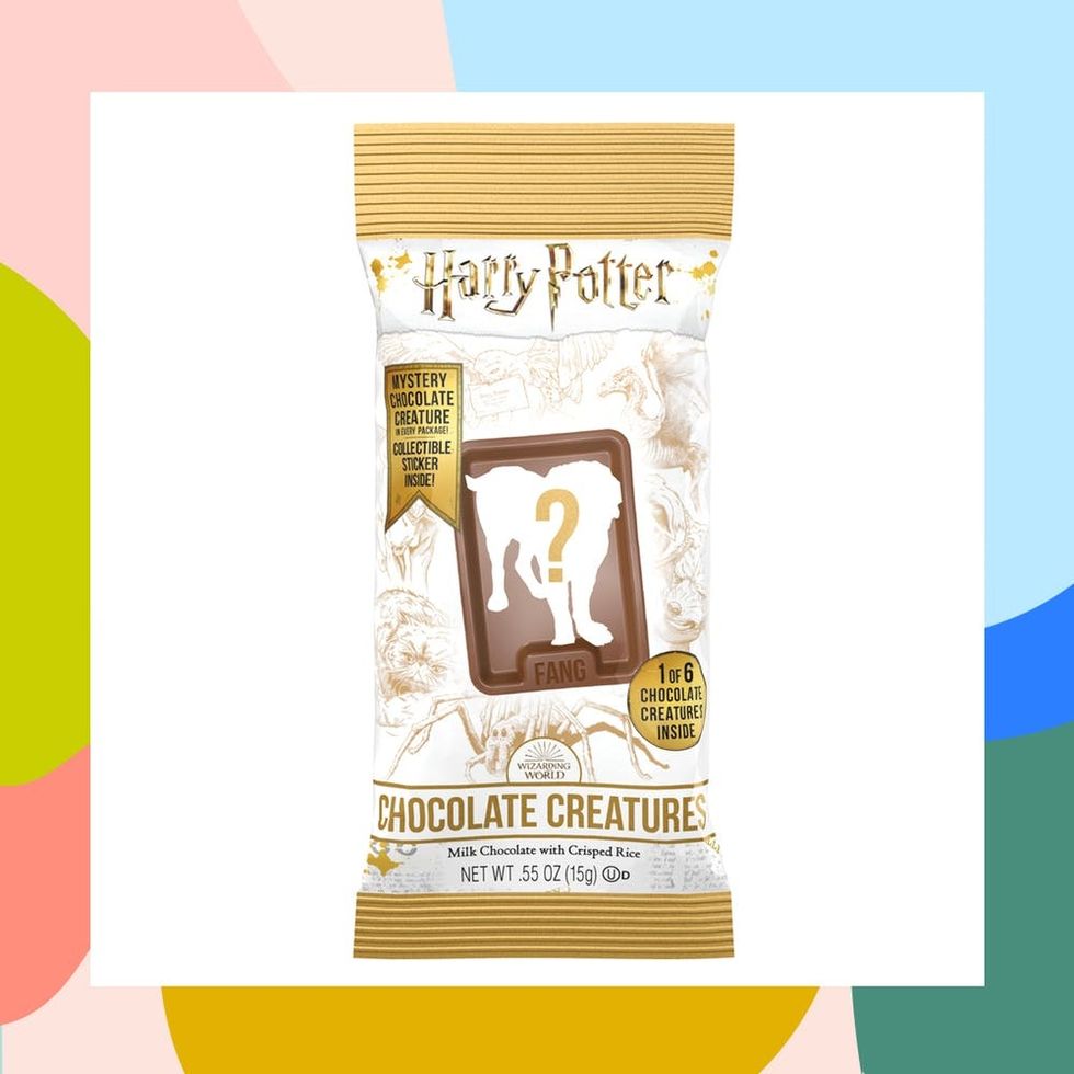 This package contains more than candy; it includes two mysteries inside. Each chocolate with crisped rice is molded in the shape of one of six creatures or pets inspired by the Wizarding World like Aragog, Crookshanks, Fang, Fluffy, Hedwig, or Thestral. If that’s not enough, there’s also six exclusive collectible stickers.