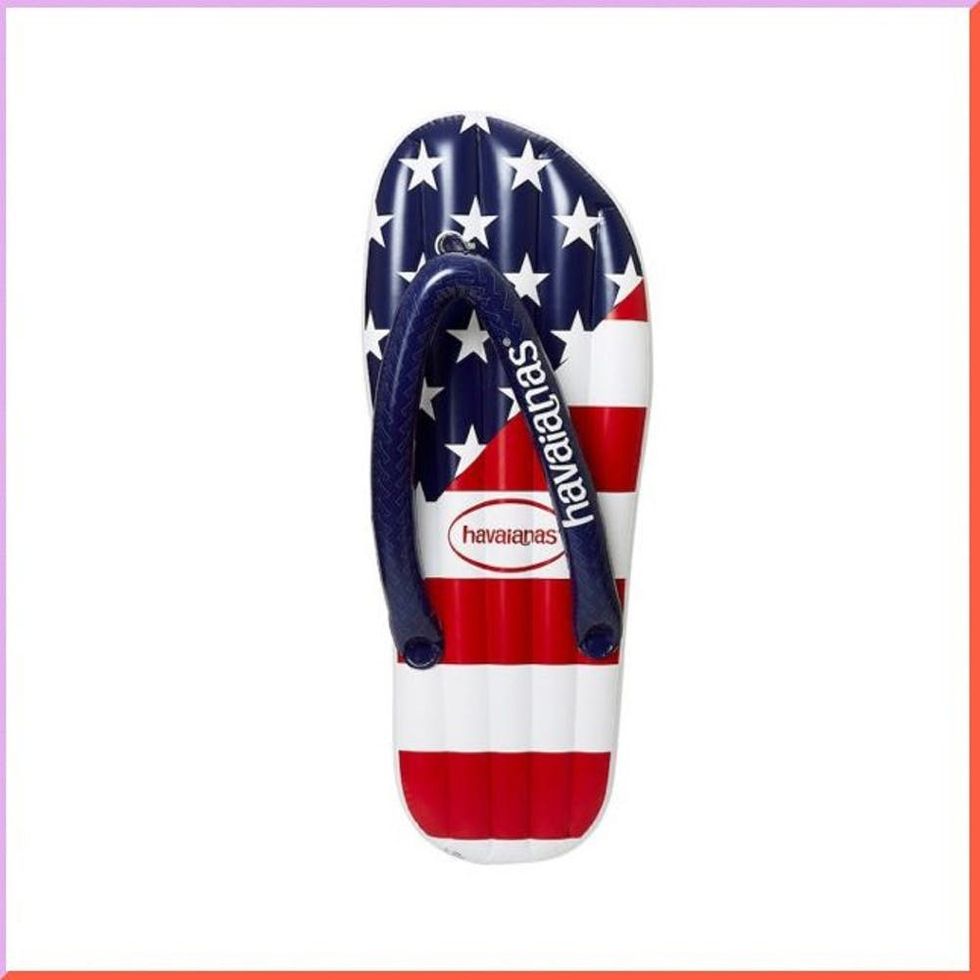 Just in time for your July Fourth pool party plans, you won’t even need that ubiquitous American flag bathing suit — because you’ll be laying atop this symbol of all that is good and summery and patriotic. Never mind that Havaianas is a Brazilian brand; you know what we mean.