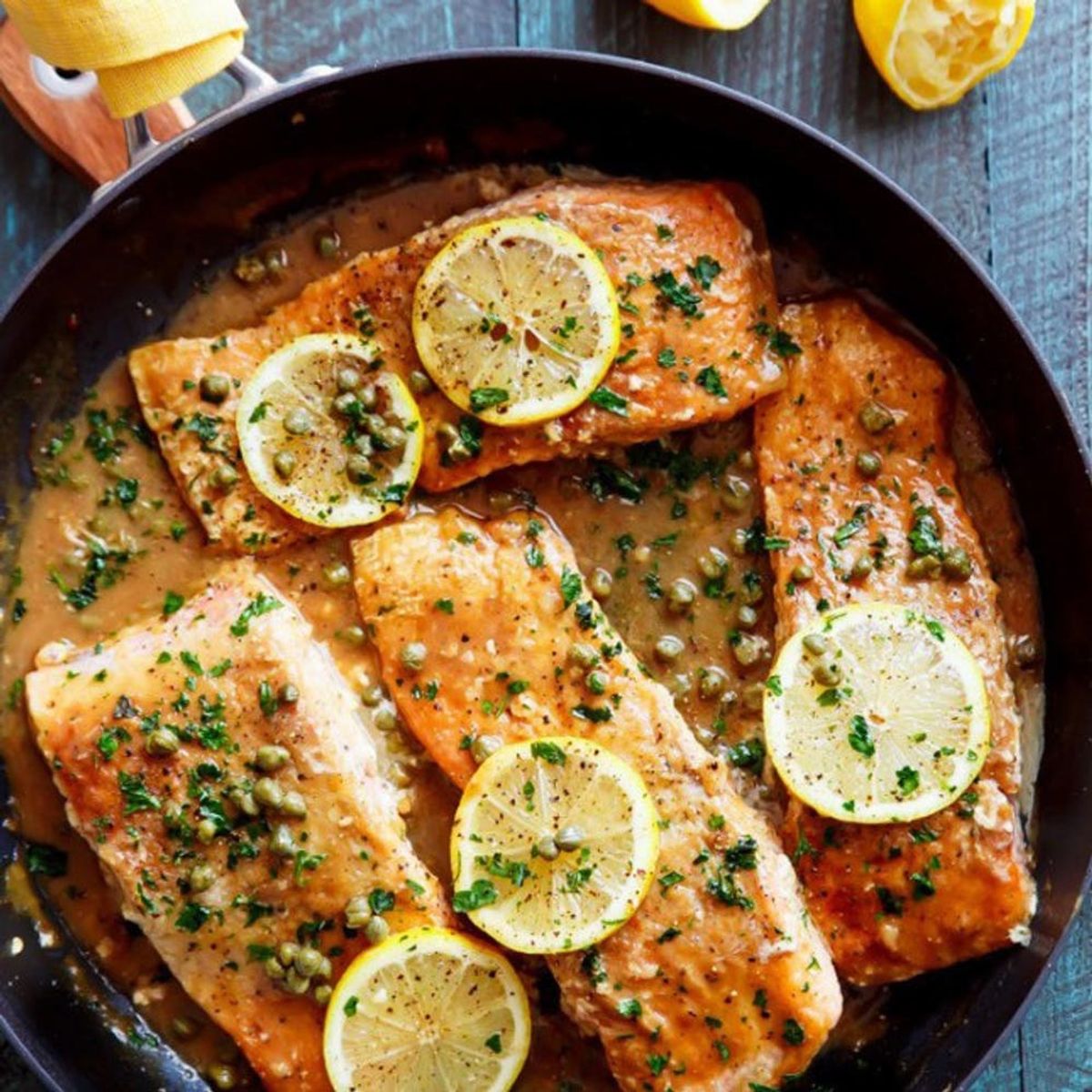 18. Easy Salmon Piccata: The lemony, salty flavors of Italian piccata work amazingly well with salmon, although piccata is usually made with veal. It’s no surprise though. Fish and lemon are a classic fatty vs. acidic flavor pairing. (via Cafe Delites)