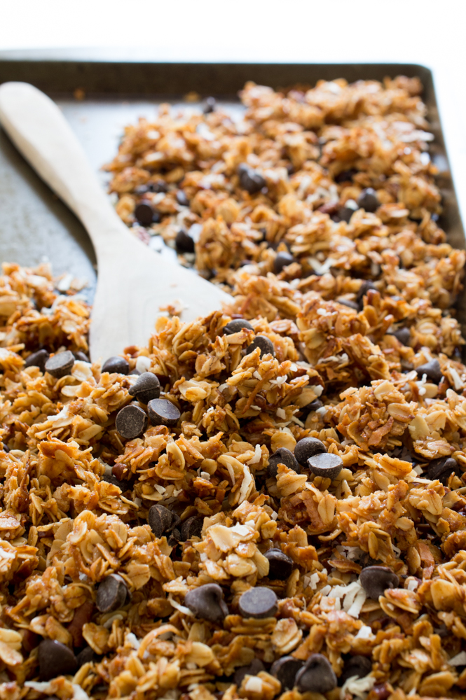 8. Coconut Pecan Chocolate Chip Granola: Think of this five-ingredient blend as less-sweet Samoas in granola form. Sounds pretty good, right? (via Chef Savvy)
