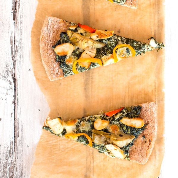 2. Spinach and Artichoke Chicken Pizza: Not gonna lie, we love spinach and artichoke dip, so when we saw this pizza we knew we had to include it. (via Savory Nothings)