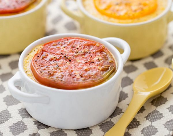 Heirloom tomato toppers bring some brightness to these smoked cheddar grits served in utterly adorable mini ramekins. (via Oh My Veggies)