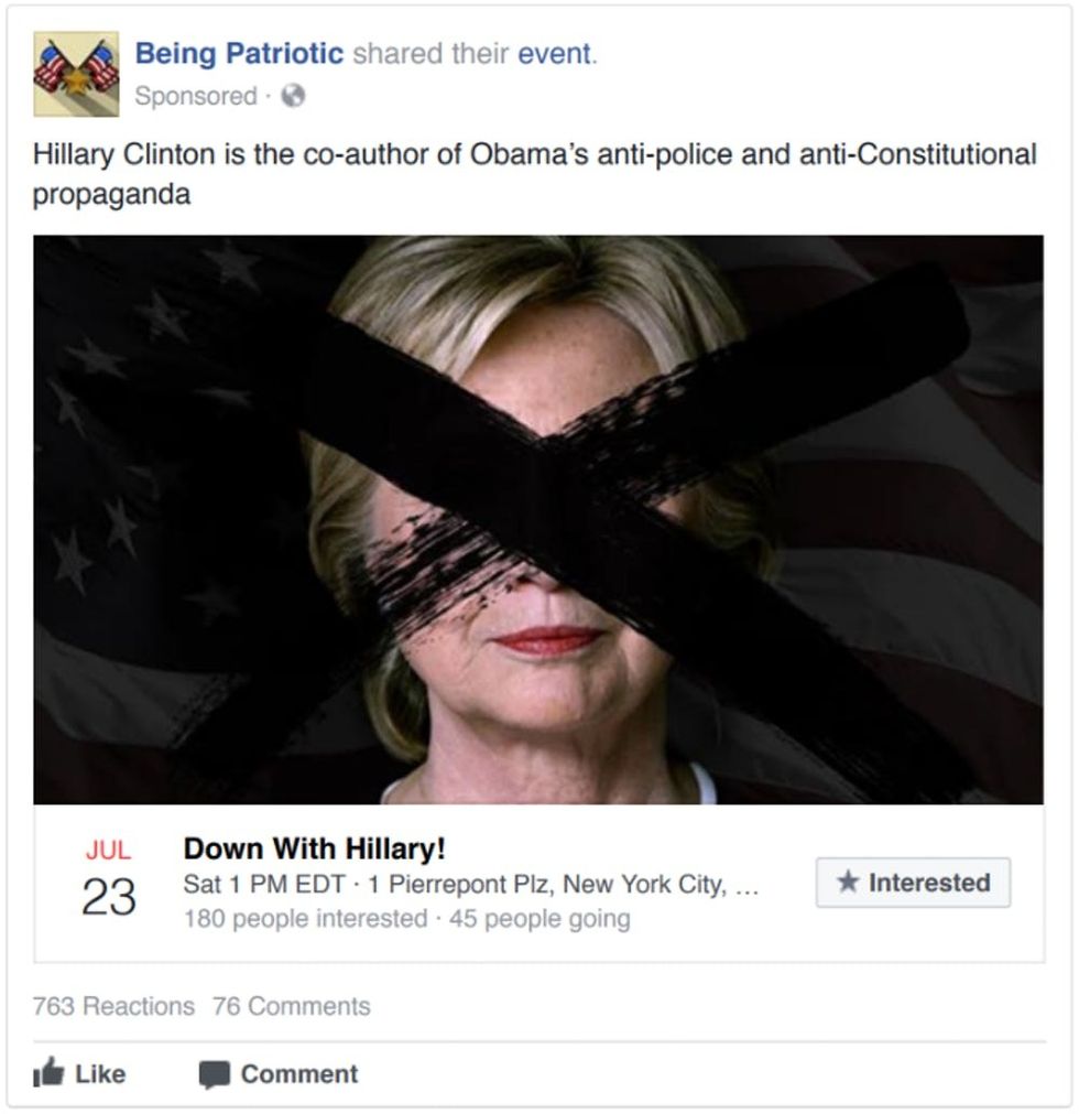 Here are a couple examples of ads and events posted to Facebook that turned out to be part of a Russian disinformation campaign aimed at playing with the emotions of voters:
