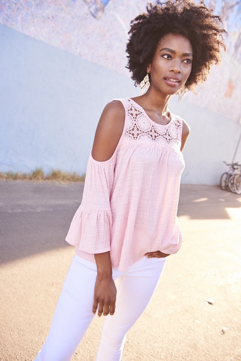1. Time & Tru: This casual-wear collection meets at the intersection of comfy and cute, thanks to timeless classics embellished with modern details (think cold-shoulder sleeves and crochet). Plus, it’s size-inclusive, offering pieces in XS-XXXL.