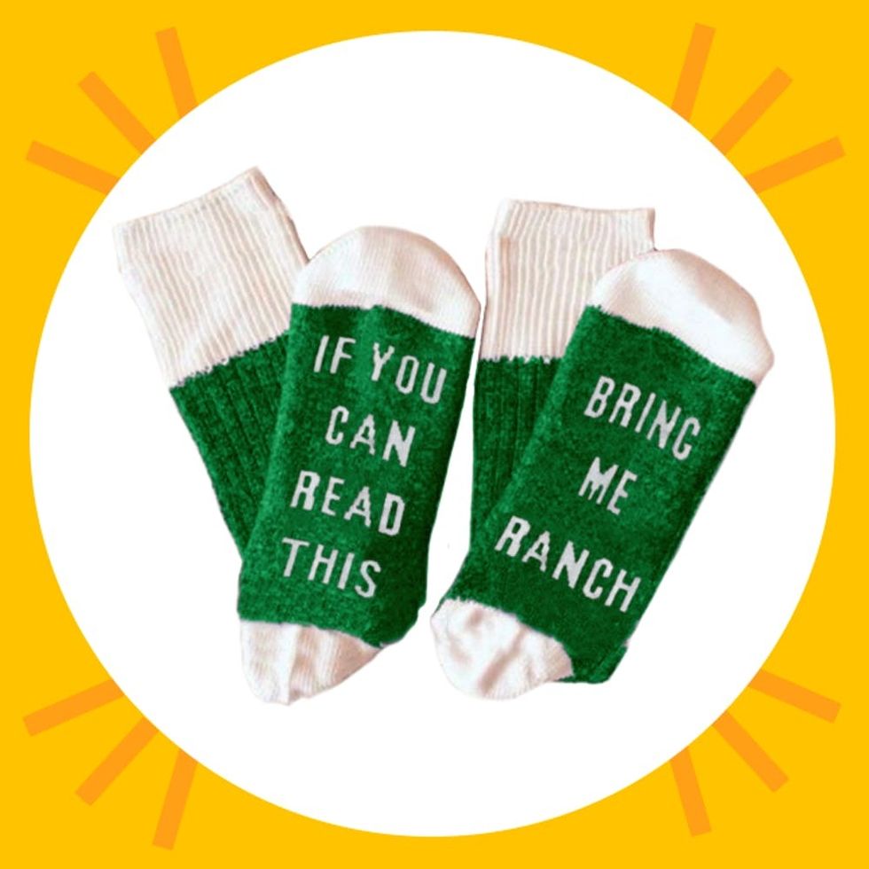 2. Ranch Statement Socks ($12): When you want some alone time but you’re willing to share if they’re bringing the veggies and dip.