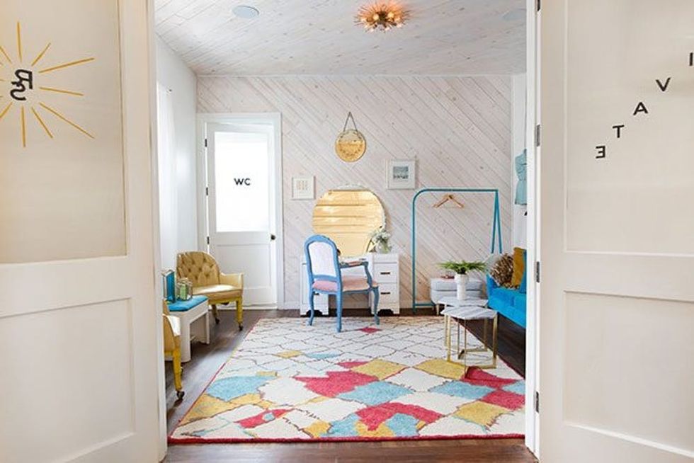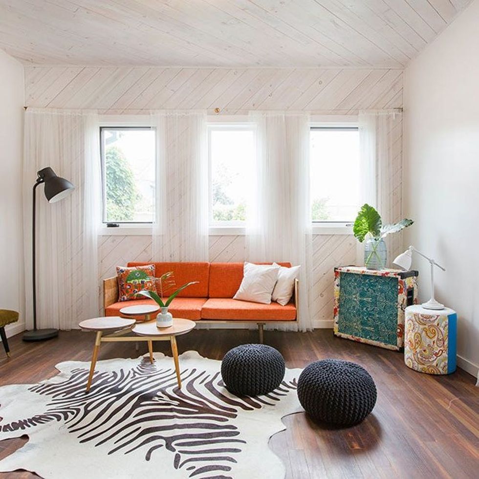 Original elements (like those wooden floors!) were preserved during the revamp to honor the building’s history, and then tons of bright, unique elements were added to the mix for a mod flair.