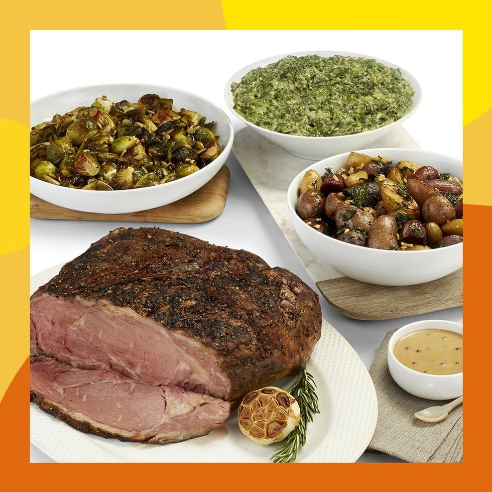 Prime rib and ham often make their way onto holiday spreads post Thanksgiving. We tried the chain’s showstopping Primer Rib Dinner for Eight ($230), and we’re still thinking about the roasted salt and pepper prime rib with green peppercorn sauce, creamed spinach and kale, maple-roasted Brussels sprouts with pepitas, and roasted fingerling potatoes with garlic and parsley. Also on the menu: