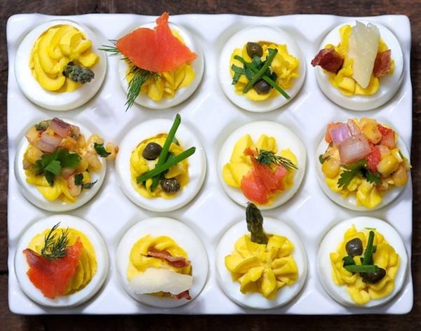 8. Fancy Deviled Eggs: There’s nothing wicked about these drop-dead gorgeous hors d’oeuvres. With five fancy deviled egg variations to choose from, you’re bound to find the perfect flavor palate for your party. (via Jennography)