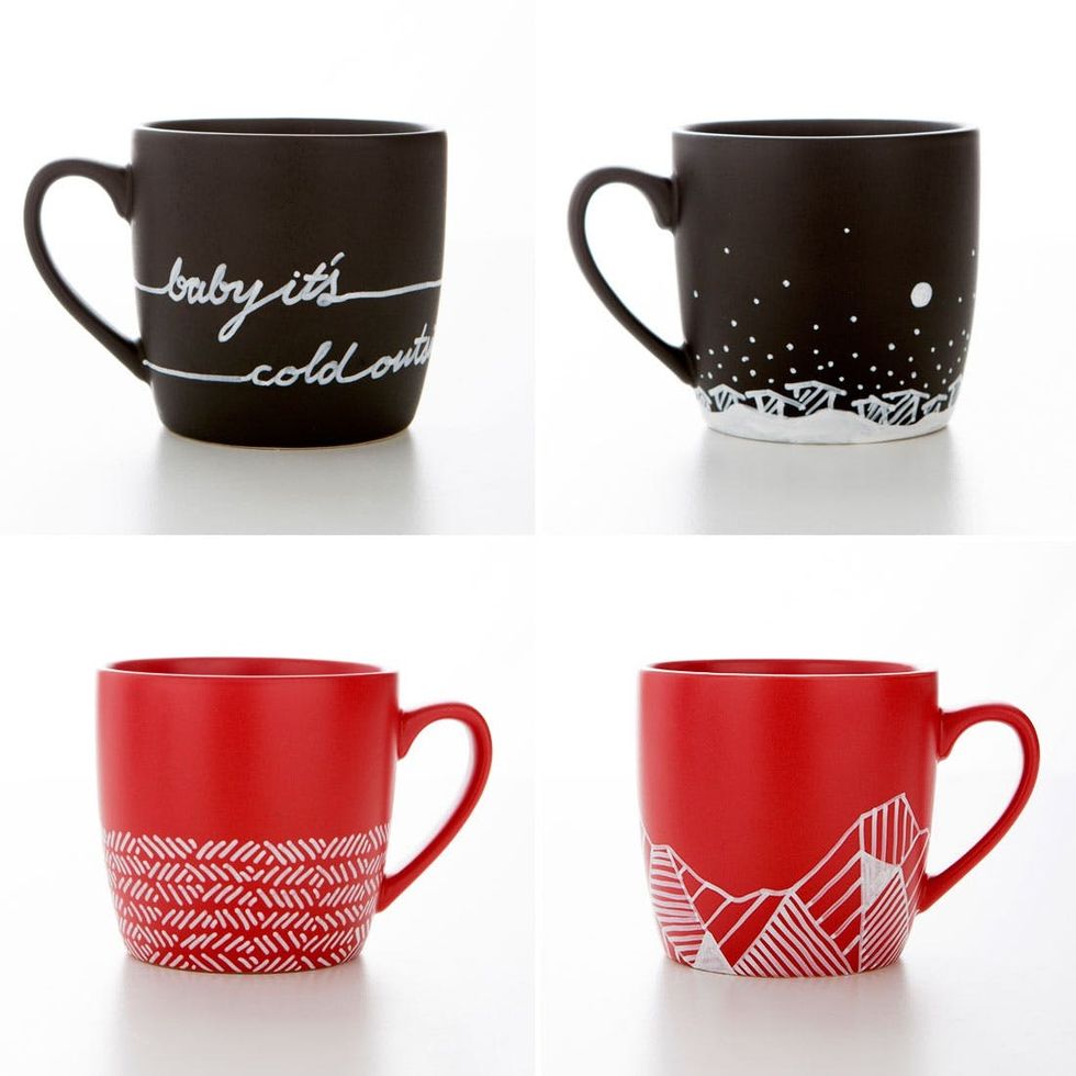 Start with the mug decorating half of this DIY. Plan out a few quick designs on a piece of paper before diving in with the paint pen.