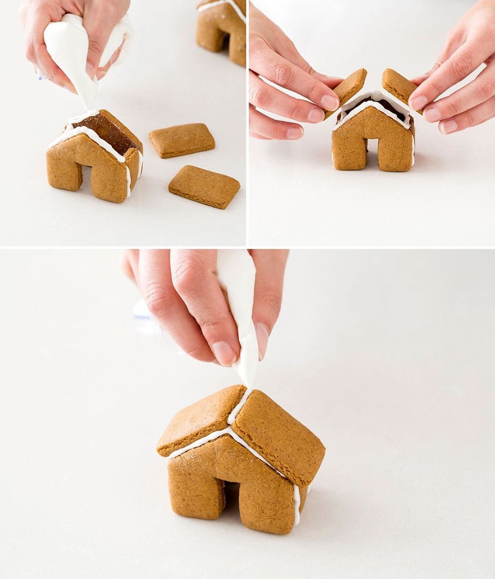 11. Assemble gingerbread houses with icing and let harden.