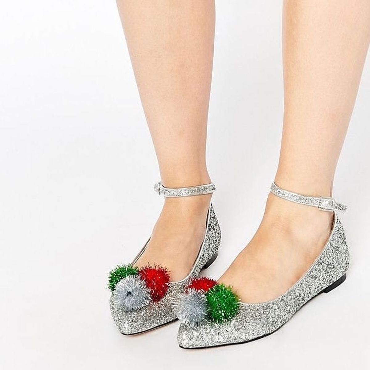 22. ASOS Lapland Christmas Ballet Flats ($45): ‘Tis the season to sport glittery flats — adorned with festive red-and-green poms, no less — on the daily. Let the countdown until Christmas begin!