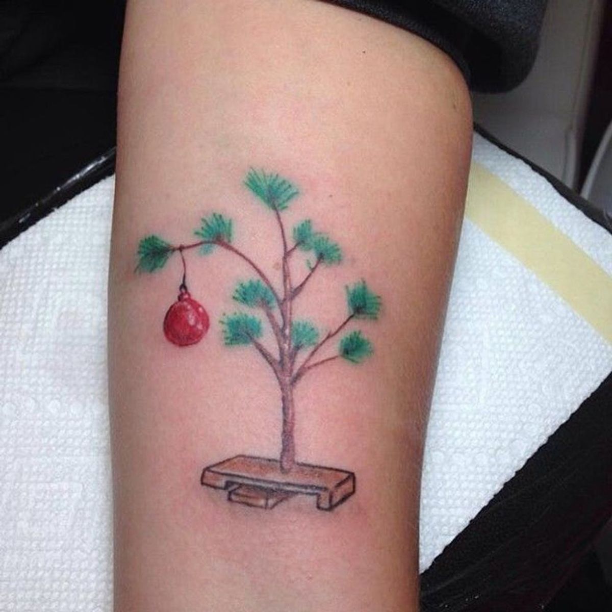 9. Oh, Christmas Tree: This adorable design spreads the holiday cheer wherever it goes. (via @horitora_tattoo)
