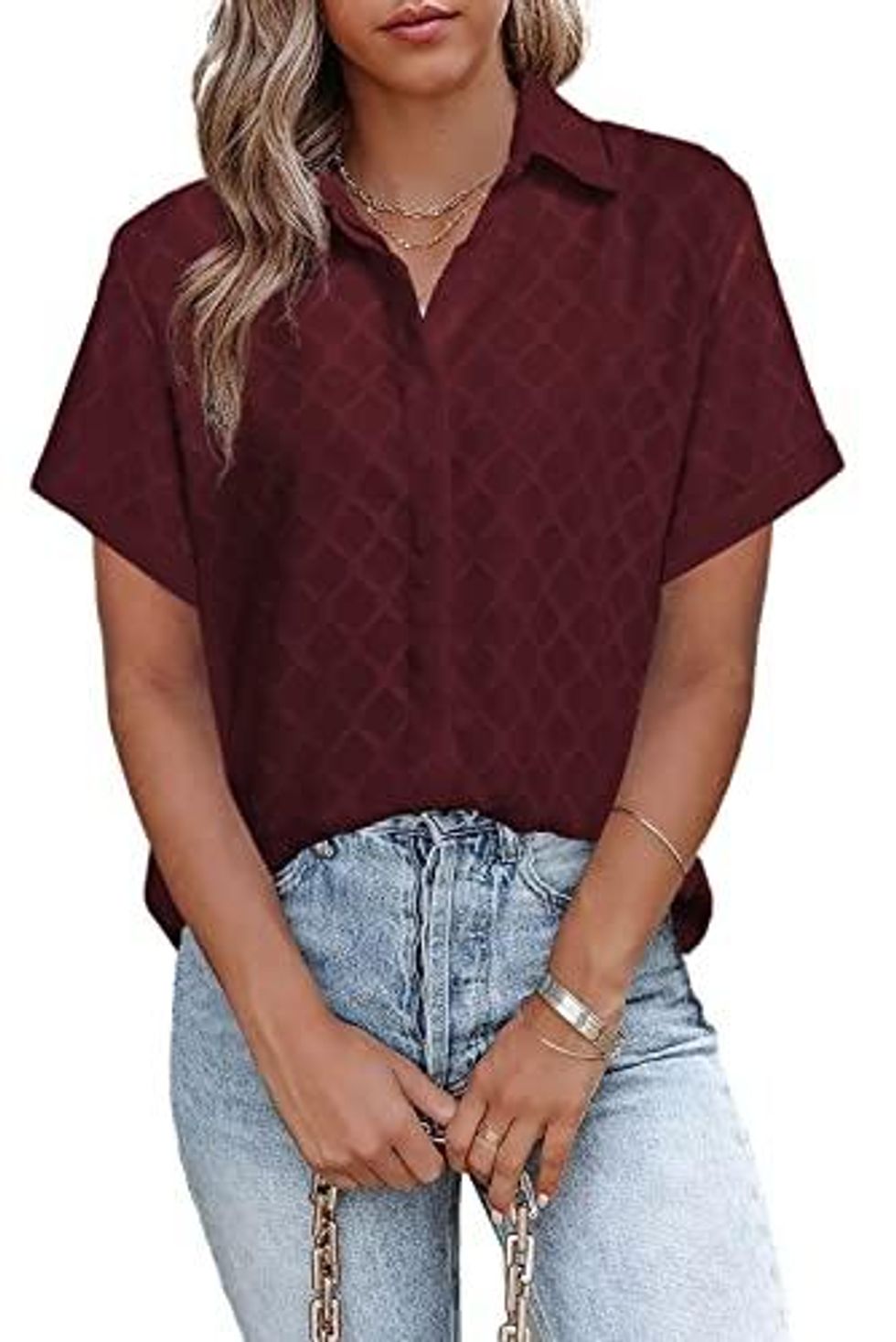 This trendy button-down blouse is the perfect piece for all of your wardrobe needs. Crafted from an ultra-soft and lightweight fabric that's comfortable to wear throughout the day, it is really a versatile wardrobe pick.