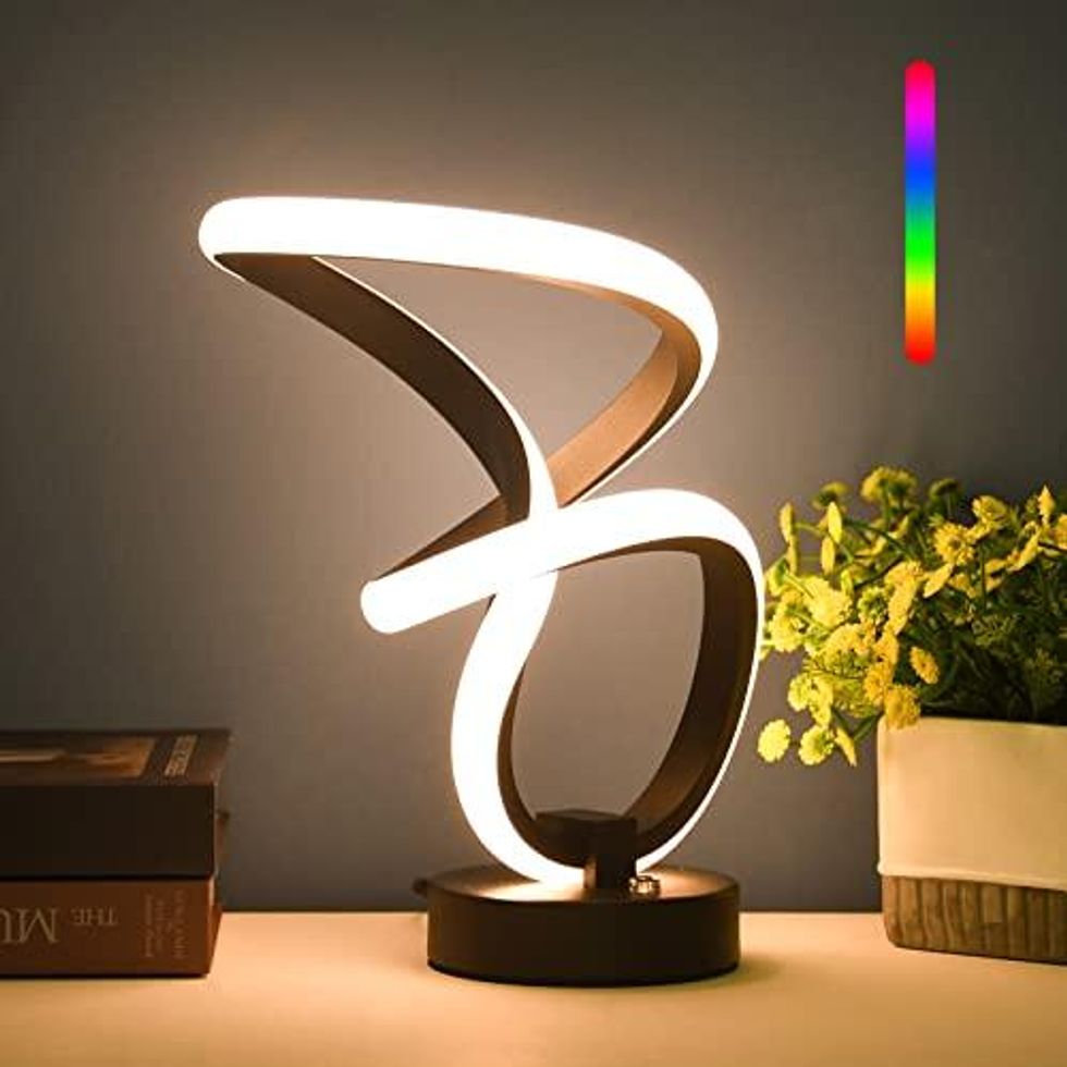 This table lamp features an abstract infinity-like design that changes to any color of the rainbow with its customizable settings. It is also touch activated for easy use.