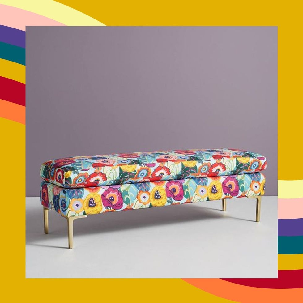 Anthropologie Karina-Printed Edlyn Bench ($798): Poppy floral fabric and brass legs? It doesn't get more swoon-worthy than that!