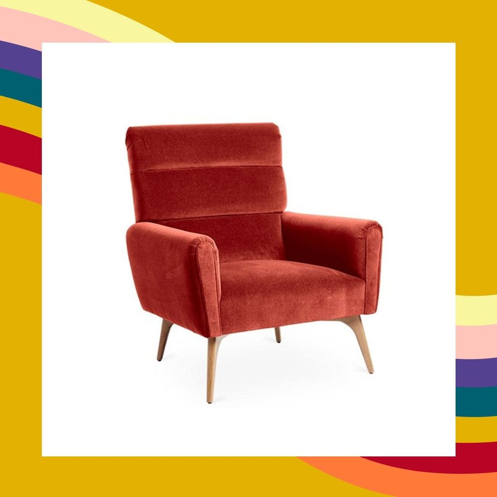 One Kings Lane Devon Accent Chair ($1,595): This pick is outfitted in *the* coziest-looking upholstery. With a name like "cinnabar velvet," we can't get enough of it.