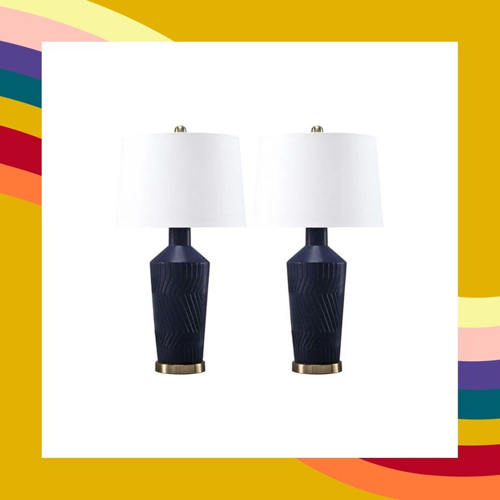 Signature Design by Ashley Leroi Ceramic Lamps ($140 for set of two): This navy blue ceramic lamp combo is trending for its moody and minimalist vibe, and we are feeling it!