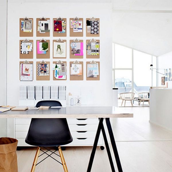 15. Clipboard Wall: If you are a bit ADD about the art that cycles through your office, consider mounting a grid of clipboards for easy swapping in and out of new inspiration. (via Decor8)
