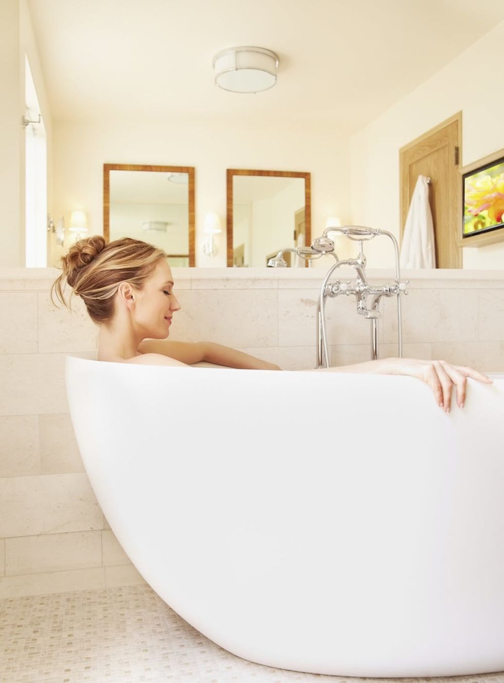 As far as style goes, HomeAdvisor Home Expert Dan DiClerico tells Brit + Co that millennials are still loving that minimalist look. “Millennials are going for the clean, minimal look in the bathroom. I think this is a reaction to the more traditional bathrooms they grew up [with] in their parents’ home. Those richer, more complicated bathrooms cost a lot to create, and many of the millennials we spoke to say they don’t have a lot of money to burn,” he says. That being said, high-tech updates are also trending. “Smart home technology, in particular, is popular with millennials, who are the first generation of digital natives to be owning and improving their homes,” says DiClerico. “They’re used to controlling cameras and doorbells and appliances on their phones. The expectation is they can now do the same with the shower, turning the water on and setting the temperature from an app on their phone, or even through the voice-controlled smart speaker on the bedside table.”
