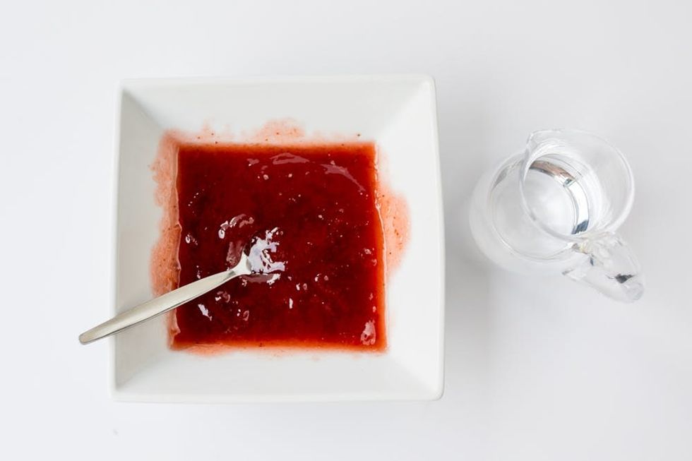- Heat the strawberry jelly up in a pan or in the microwave — just until it loosens (about 30 seconds in the microwave). Add a splash of boiling water if you need to loosen it a little more.