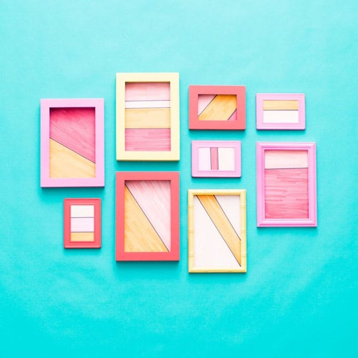 1. Choose frames that go well together. We chose all white for this scene, but you can mix and match colors so long as nothing stands out.