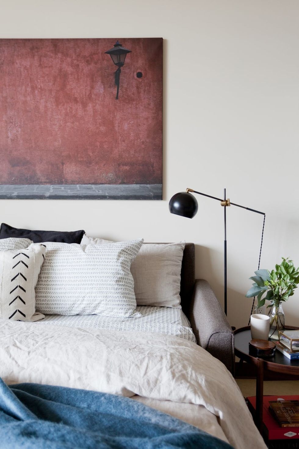 2. It’s the little things that count. The quickest way to make your guests feel at home? Zoom in on the details. “Think about what makes a hotel stay special, which can be inexpensive ways to go the extra mile for your guests,” says Wallenstein. “A nice bottle of water, some sweets on the nightstand, a room free of clutter, and fresh towels go a long way. Throw in a candle and some flowers and your guest will feel well taken care of.” This ethos extends to the furniture too. “I try to design the space with the same level of thoughtfulness as my own bedroom,” she says. “The things that make me comfortable, such as a a place to sit and read other than in bed, a full-length mirror for getting ready in the morning, are the same things that will make a guest feel at home.”