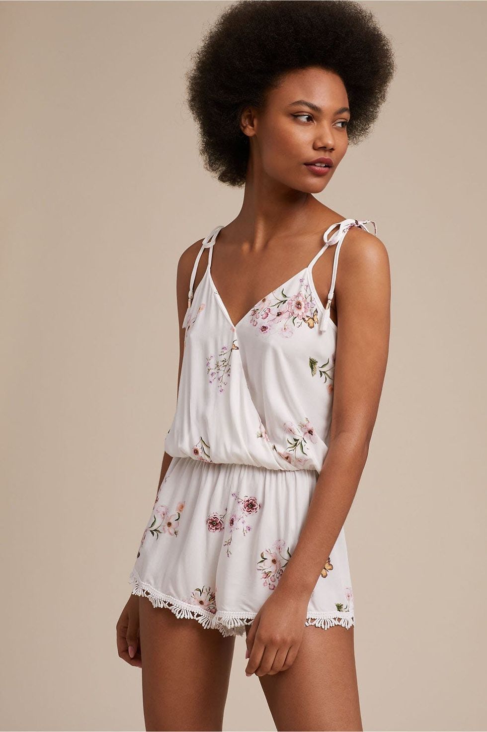Safari: If you're spending your honeymoon on a safari or other adventure, the last thing you want to do after a long day of activities is to struggle into a tight bodysuit with straps and clasps. Opt for easy, casual rompers, like this Eberjey Foxtail Dreamer Teddy ($111), which are more seductive than your old pjs but still comfortable for a night in a safari tent.