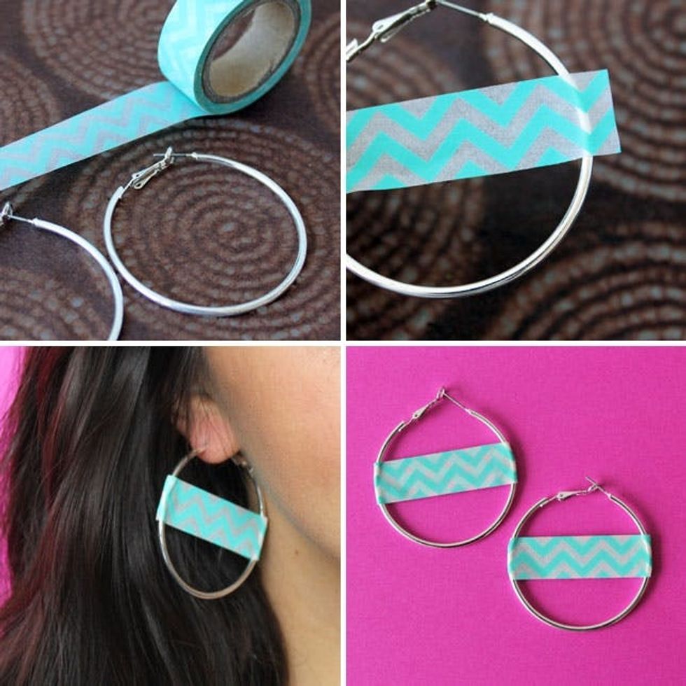 Simply paint your hoops just like you’d paint your nails. Do two coats, let dry, and you’ve got a cool plastic-like coating that’s oh-so-bright.