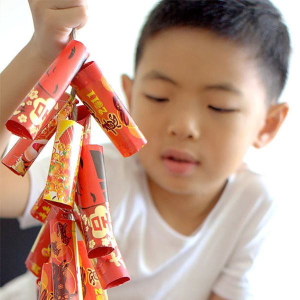 5. Chinese Firecrackers: Make some firecrackers out of red construction paper and string them together with twine. You can hang them outside or on your door knobs. The sound of a firecracker is meant to scare away bad luck, but in case you don’t have real ones, there’s an app for that. (via Hai Fang)