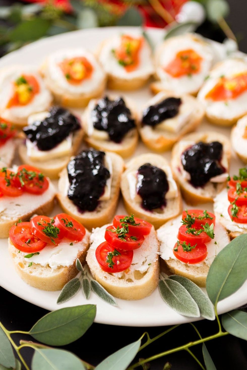 For appetizers, make low-maintenance dishes like these easy-as-can-be fancy crostini, which are a cinch to eat sans utensils. They’re also pretty delightful to look at, no?