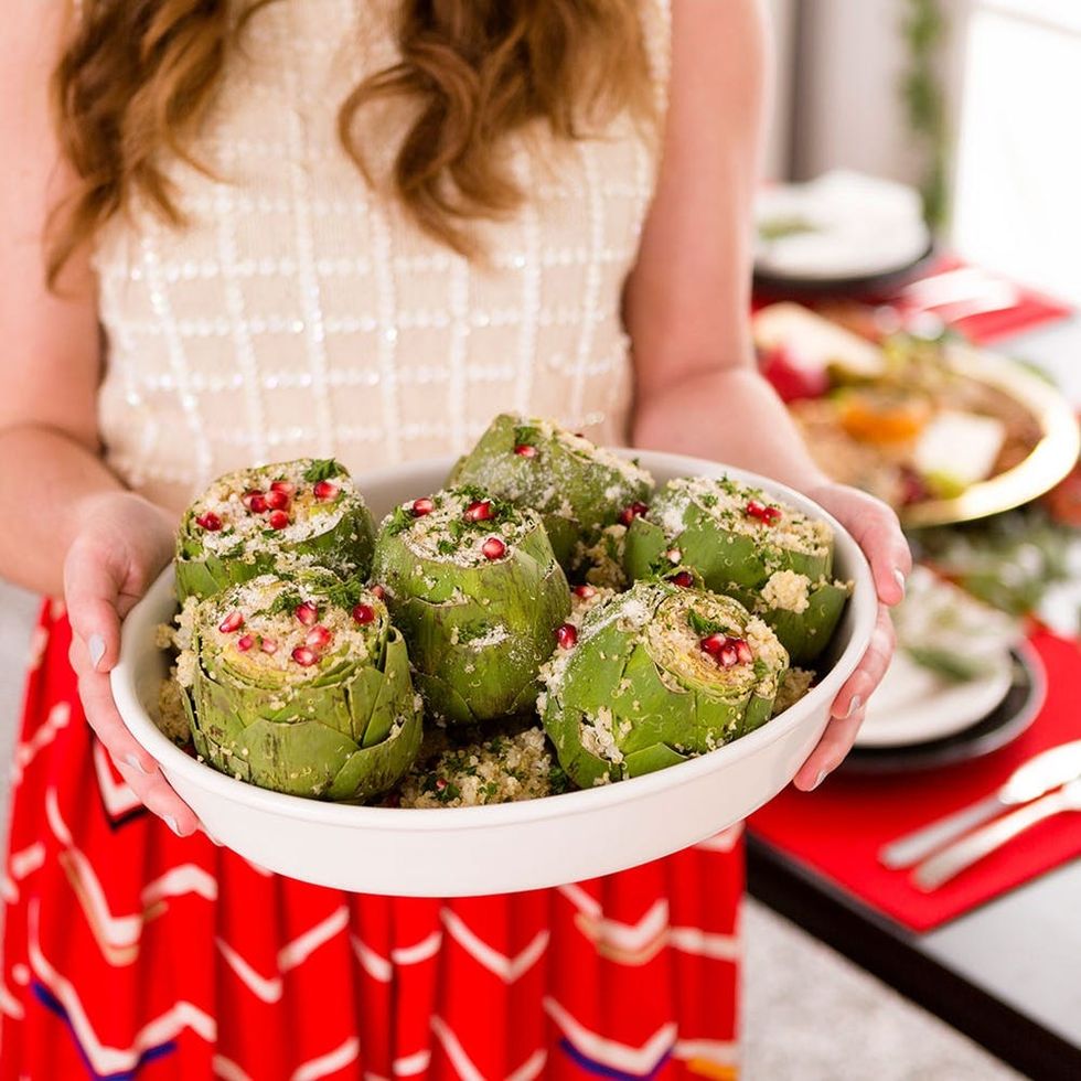 For the entrée, go with a unique dish with crowd-pleasing ingredients, like couscous and pomegranate stuffed artichokes, which, thanks to the oooey-gooey garlicky Parmesan topping, will definitely be well-received. Serve it up in an oven-safe tray, like this VARDAGEN oven dish, so you can keep it warm and toasty until the guests arrive.