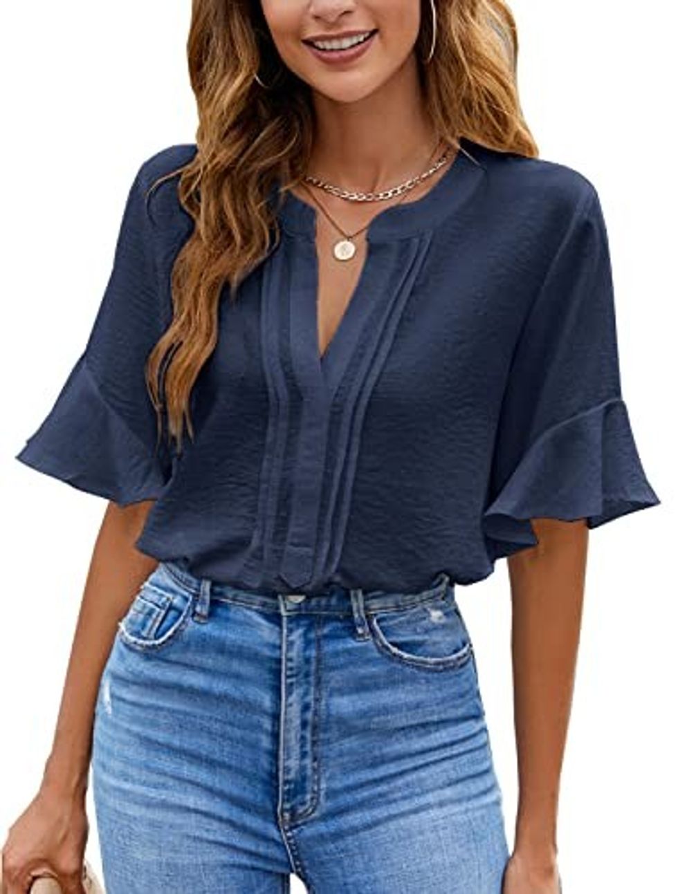 Pair this pretty blue blouse with a pair of jean shorts and you've got the perfect brunch outfit to meet the gals. Look classy and comfy at the same time!