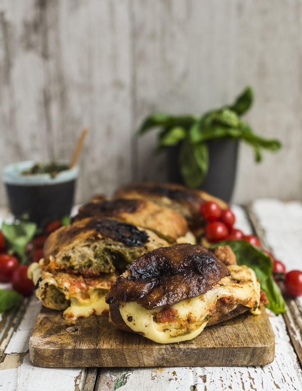 3. Caprese Sandwiches: Get your Caprese fix even in the winter with this recipe, which swaps fresh tomato slices for homemade sauce. Basil pesto and mozzarella are added to the mix, then everything’s sandwiched between slices of ciabatta bread and baked. (via Heinstirred)