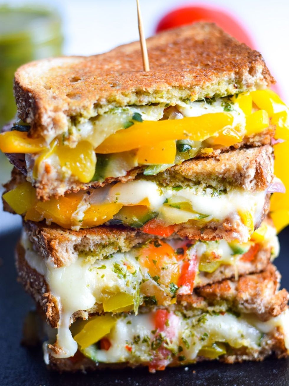 11. Fajita Grilled Cheese: Chimichurri adds a tangy, herbal element to these gooey grilled cheese sandwiches. It helps meld together all of the flavors, from the sautéed fajita veggies to the milky mozzarella. (via Isabel Eats)
