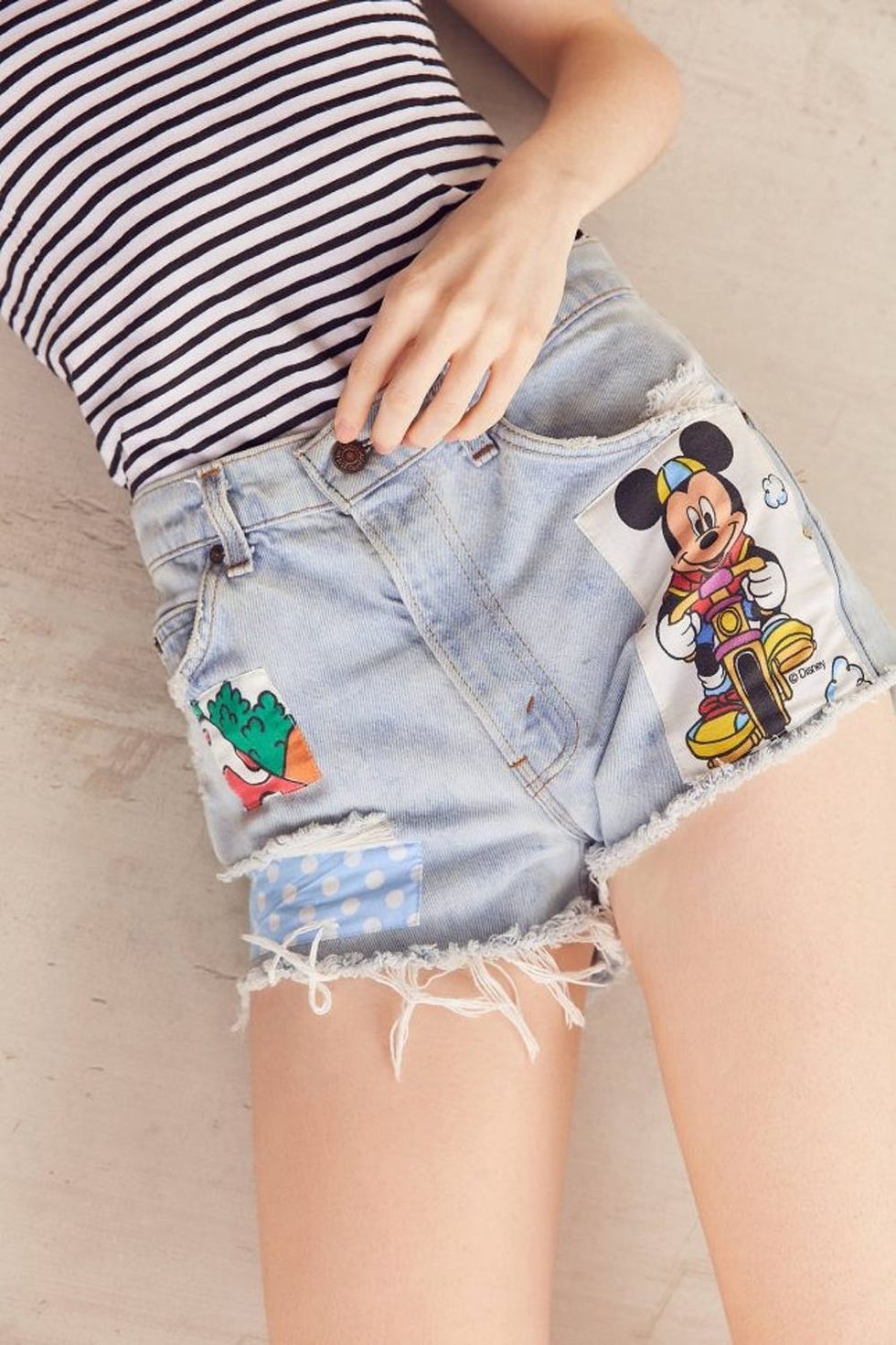 6. Hit up Urban Outfitters for repurposed vintage Levis. Urban Outfitter’s in-house label, Urban Renewal, is known to churn out quite a few pairs of repurposed Levi’s. Whether upcycled from a pair of old vintage Levi’s jeans or spiffed up with a slew of playful patches (we see you, Mickey!) and one-of-a-kind distressing, no two pairs are alike. Brit + Co Pick: Urban Renewal Recycled Levi’s Cartoon Patch Denim Short ($59)