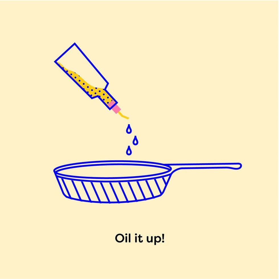Once the skillet is free of residue, it’s time to lotion up. Nothing beats moisturizing after a hot and steamy shower, and the skillet agrees. With a paper towel, rub a neutral, high-heat oil like canola or vegetable shortening inside the pan in a circular motion.