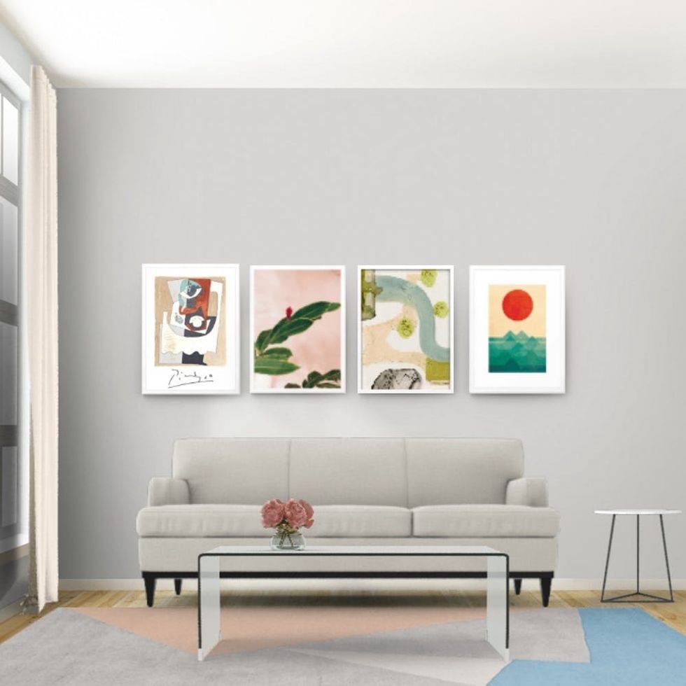 4. Placement is everything. A carefully crafted arrangement is key to keeping things looking good. But rather than recruiting a helper and drilling (unnecessary) holes, Fischel-Bock advises using a handy tool like the Hutch app to lay everything out. “You can utilize our curated filters to get inspiration or take a photo of your space to create your custom gallery wall,” she says.