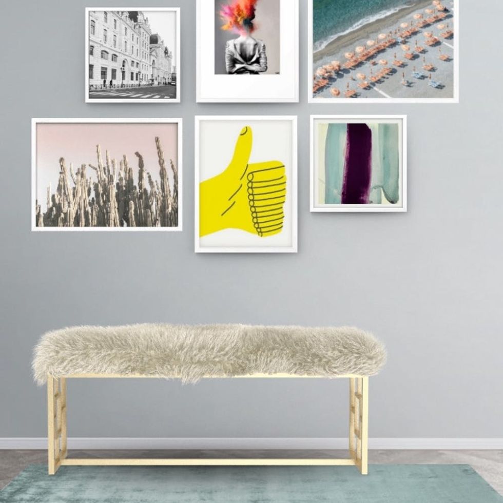 1. Use all types of art. The most inspiring gallery walls can also be the most random. Fischel-Bock suggests that unless you have a v. specific look in mind (like a black and white ensemble), it’s better to play with multiple mediums. From paintings and photographs to handmade art and graphic prints, there are countless options to work with that’ll keep your budget more flexible.