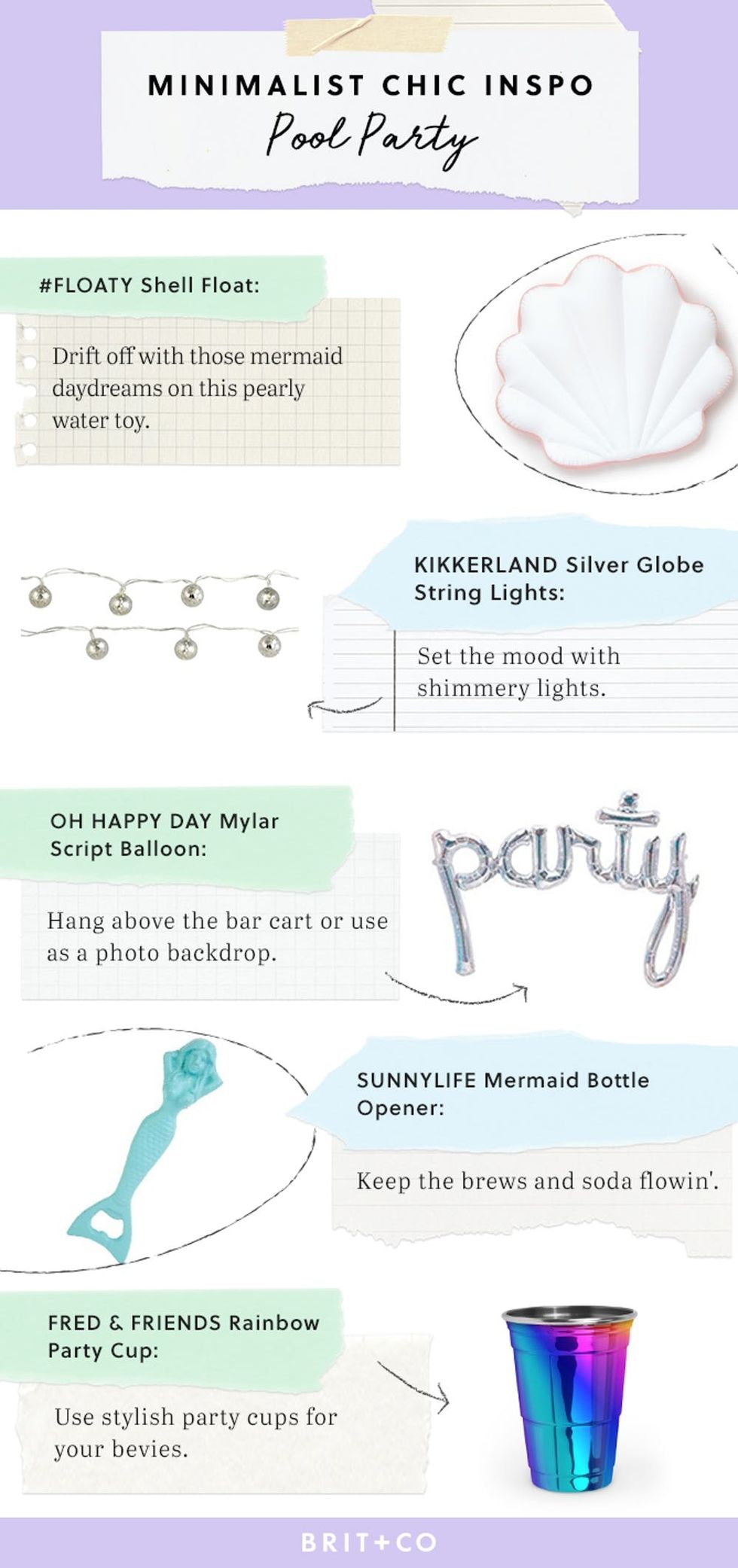With warmer days filling up the forecast, there’s nothing like an epic pool party to cool things down. If you’re lucky enough to have one, it’s definitely time to blow up those floats, grab some epic party games, and perfect a tasty summer cocktail. This week’s edition of Decor Resolutions will show you how to throw that Instagram-worthy pool party you’ve been dreaming of all winter. So grab your sunglasses and scroll down to see how we’d style a pool party for the boho-tropical gal, the minimalist mermaid, and the preppy sun lover.