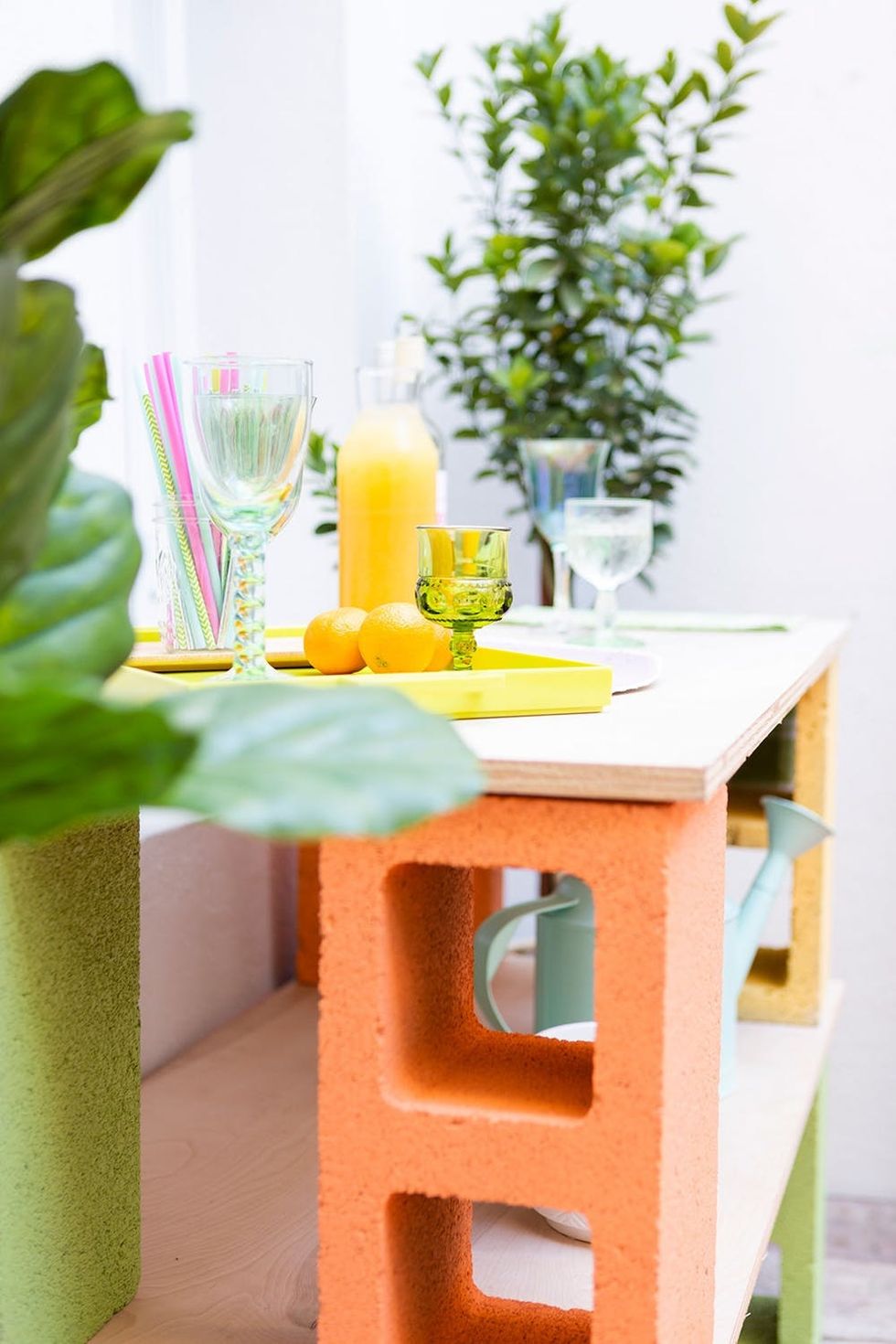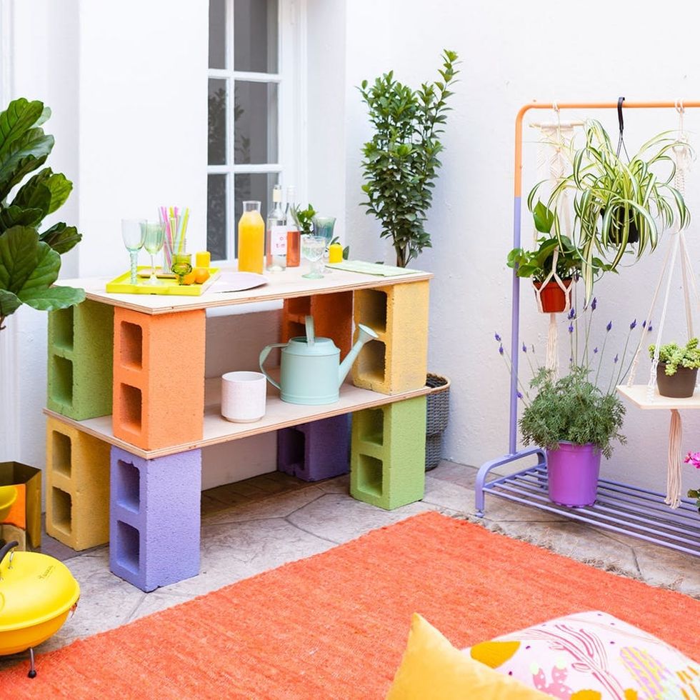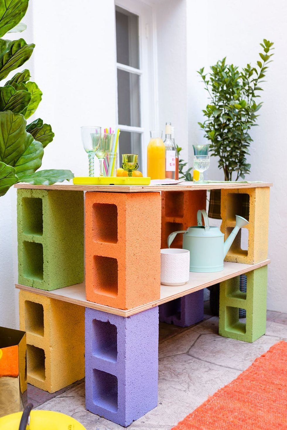 This colorful number is simple, affordable, and just as functional as its pricey, pre-built counterparts. By using cinder blocks (which cost around $2 each), spray paint, and wood flats, you can customize the size, shape, and color of the bar.