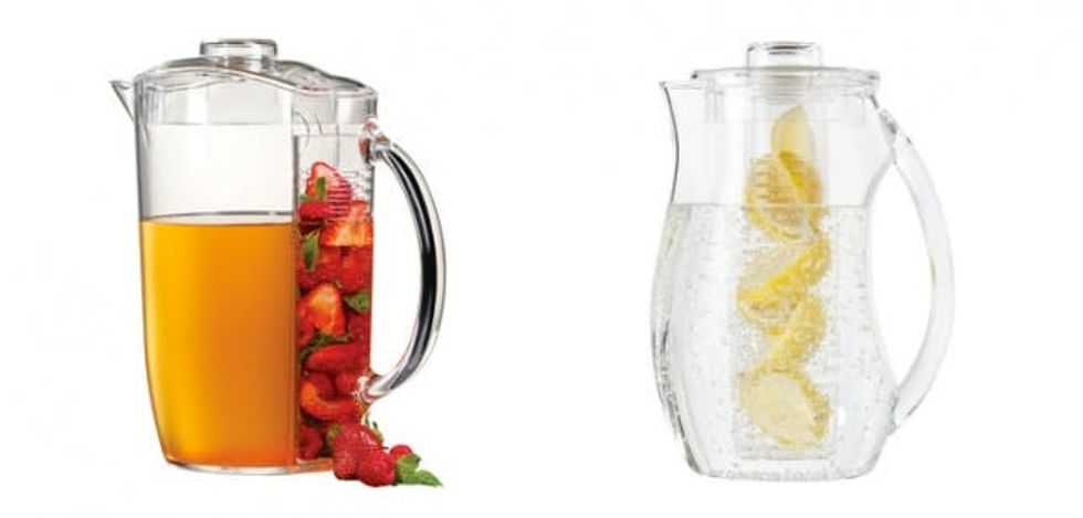 If you’re keeping a pitcher on hand to pour multiple glasses of water, try the Prodyne. It’s an acrylic pitcher with a removable hollow rod for adding fruits or herbs. This ensures that 100% of the water is constantly keeping fruit-infused. This guy also works great for flavoring other types of beverages like iced tea or lemonade. Or for me, Kombucha.