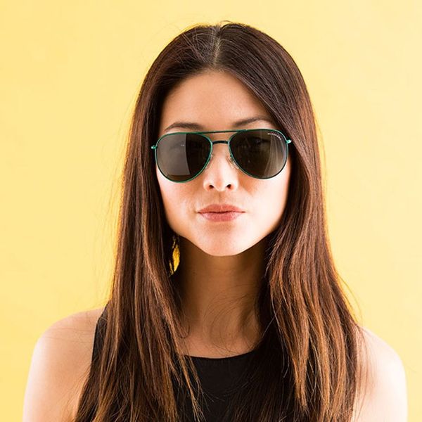 There’s a reason why you see Reese Witherspoon rocking aviators almost exclusively. “The teardrop shape at the bottom [of aviator glasses] hits the cheekbones [on people with heart-shaped faces] at just the right point to add depth to and compliment their features,” said Sarah. That detail is so clutch because it draws attention downward and away from the widest part of your face. Aviators made of lighter, thinner materials are most complimentary to heart-shaped faces, and although that seems sartorially minimal, there are ways to amp up the look, like with colored frames. “I love the selection of the green color on these glasses, it upgrades your look just a little bit,” said Sarah. “It lets you add a little personality to your aviator.” If pop-of-color frames are hard to come by, you can also look for other next-level details like mirrored or tinted lenses.