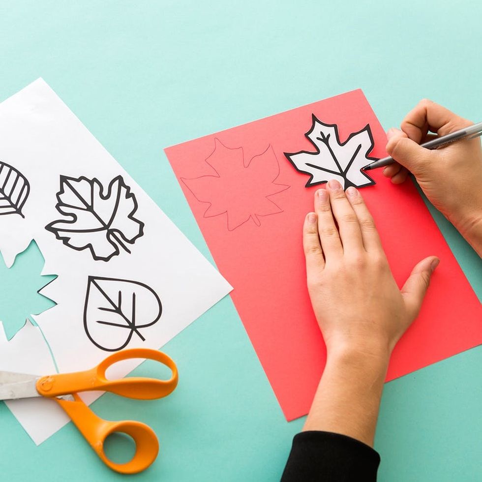 Download and print our leaf template. Trace the leaves onto various colors of paper and cut out. Our runner is made up of about 50 leaves.